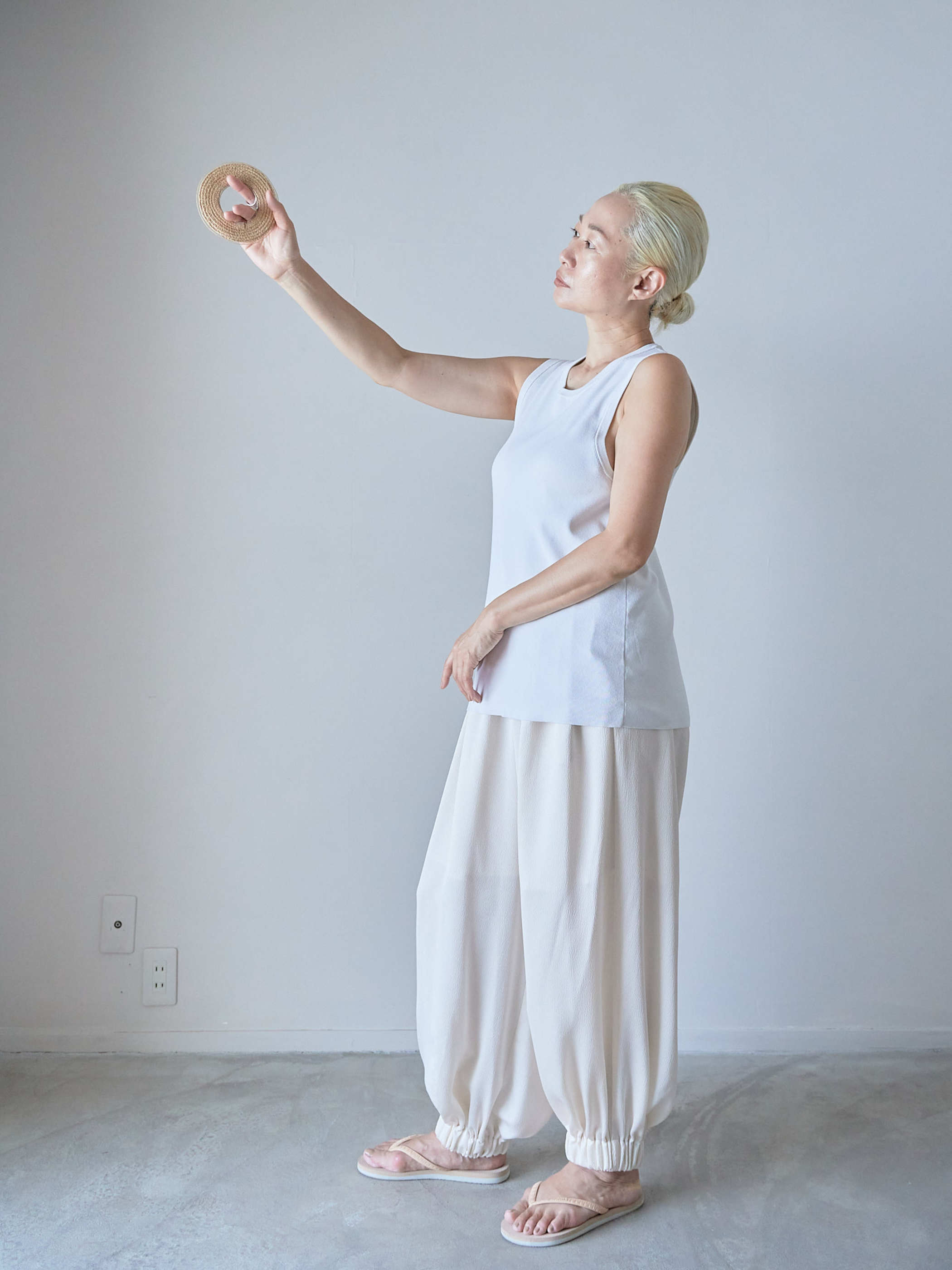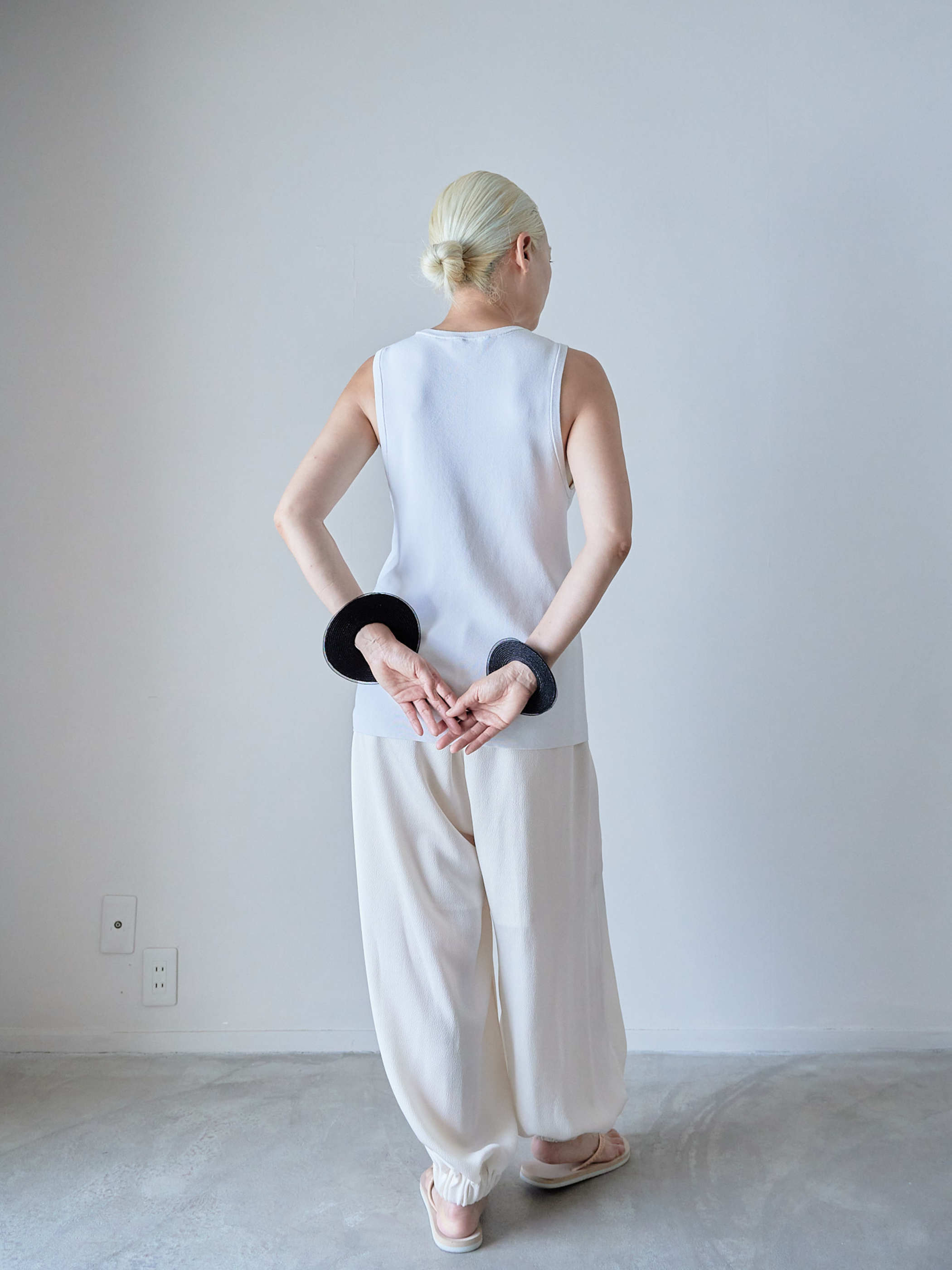 手元のコーディネートに天然素材を取り入れることで抜け感を出せます。