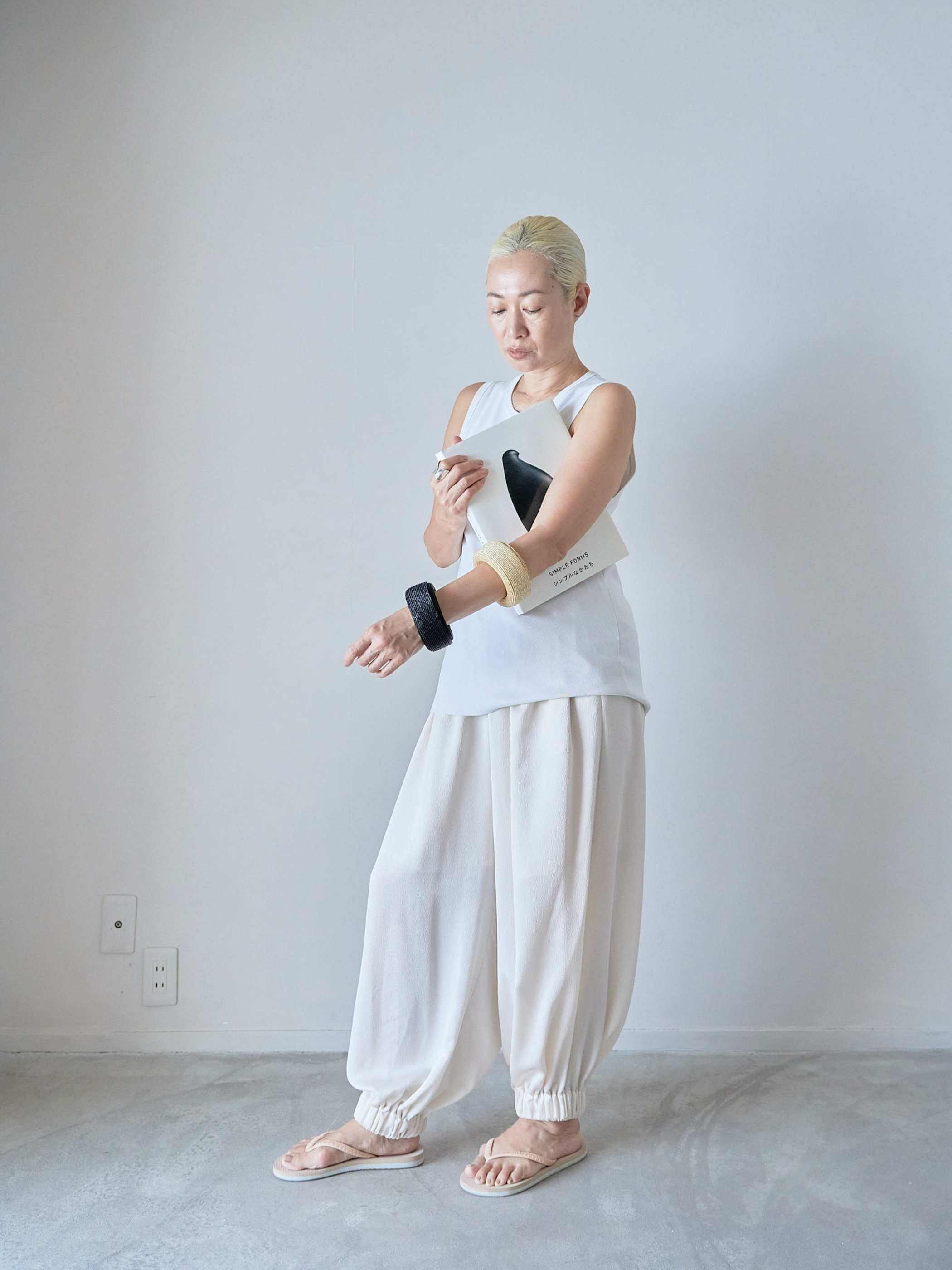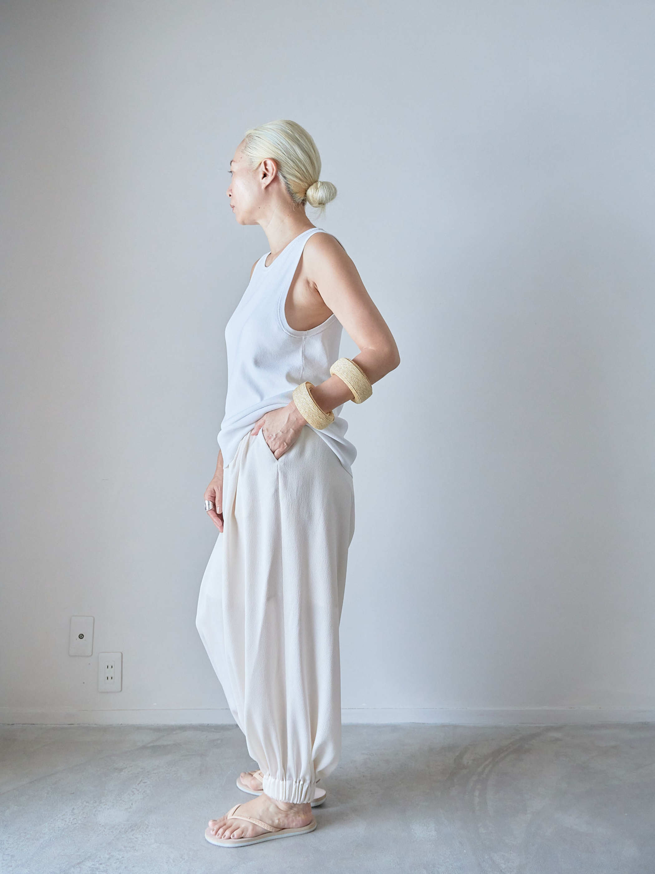 極細麦を使用した四角いシルエットのバングル。
